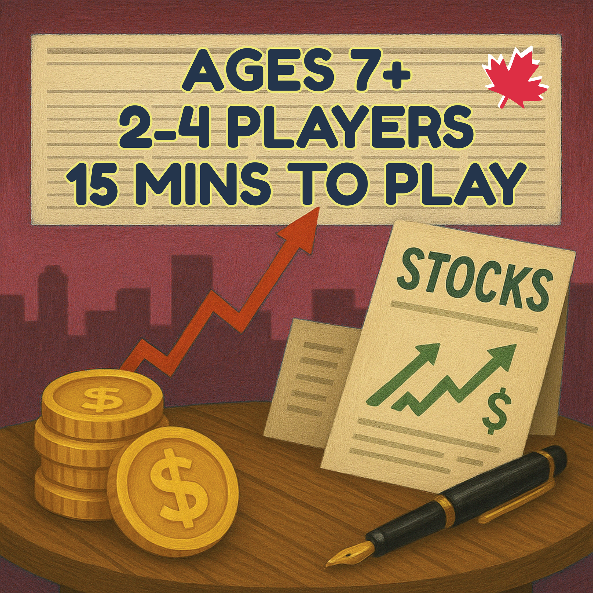Buy & Sell shares while navigating unpredictable real-world Canadian-themed Event Cards sending stock prices soaring or plummeting! Capitalize on golden opportunities with Action Cards and track your journey to billions on your scoreboard.